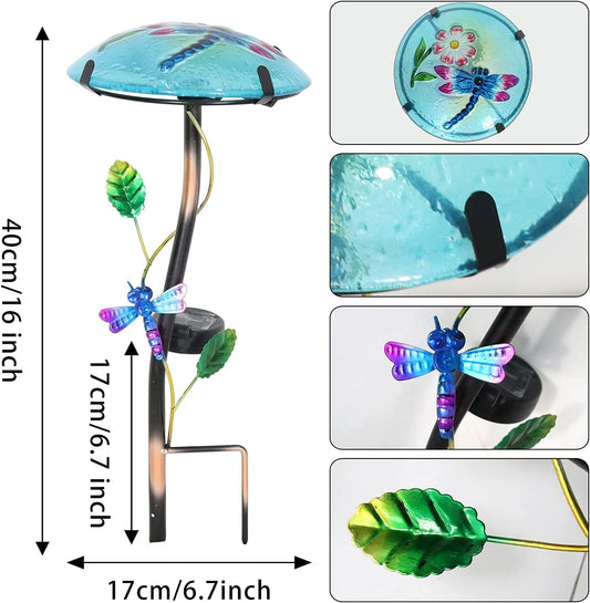 Glass Mushroom Shape with Dragonfly Pattern - Waterproof Upgraded Outdoor Ground Landscape