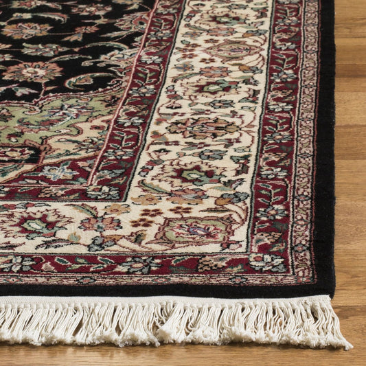 Royal Kerman Collection Area Rug - 6' X 9', Black & Ivory, Handmade Traditional Wool, Ideal for High Traffic Areas in Living Room, Bedroom (RK82C)