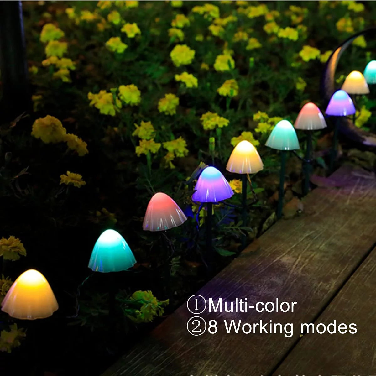 Mushroom Solar Lights, 8 Modes 12 LED Outdoor Waterproof Solar Garden Lights, Color Mushroom Solar Lights Landscape Pathway Lights